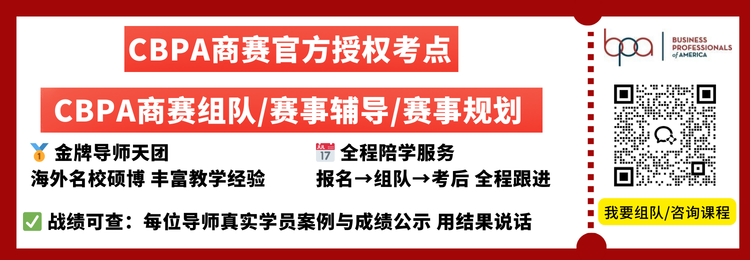 注:本网站非官网,CBPA 未来商业领袖研习社俱乐部为大家提供比赛咨询和备赛资料